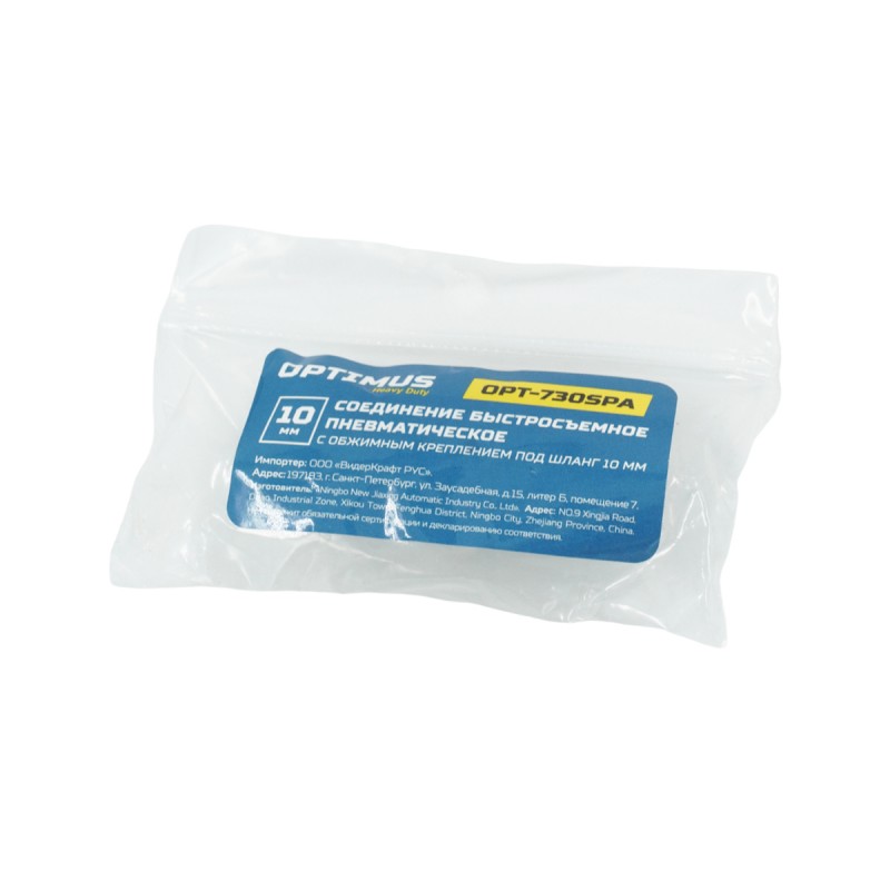 Соединение быстросъемное пневматическое с обжимным креплением под шланг 10 мм OPT-730SPA