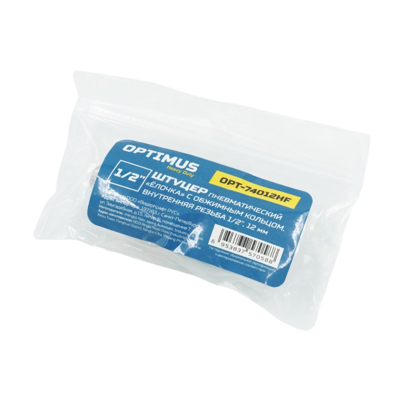 Штуцер пневматический ёлочка с обжимным кольцом, внутренняя резьба 1/4, 12 мм OPT-74012HF