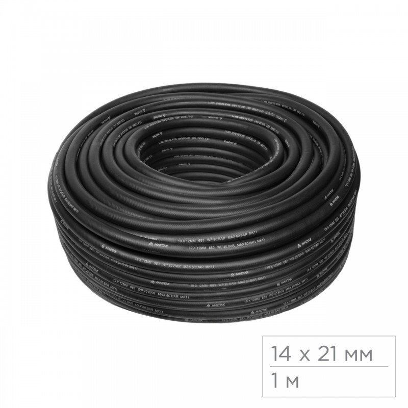 Шланг пневматический 14х21 мм, 1 м, резиновый МАСТАК 683-14050M1