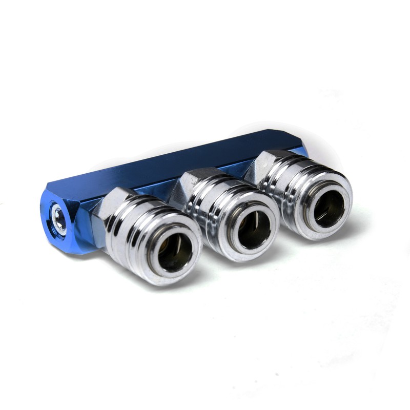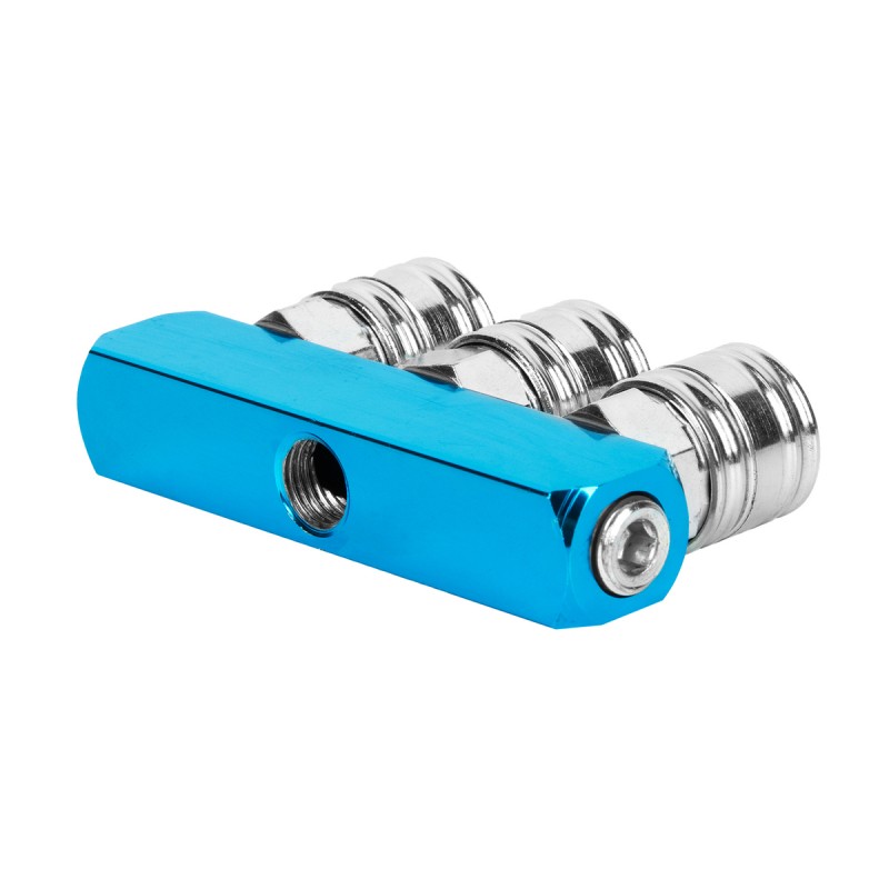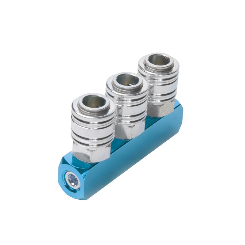 Соединительный тройник WiederKraft WDK-65359 используется совместно с компрессорным оборудованием для подключения трех пневмоинструментов. Оснащен тремя быстроразъемами рапид типа мама. Диаметр резьбы входного отверстия - 1/4.