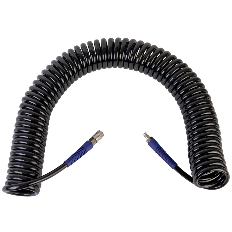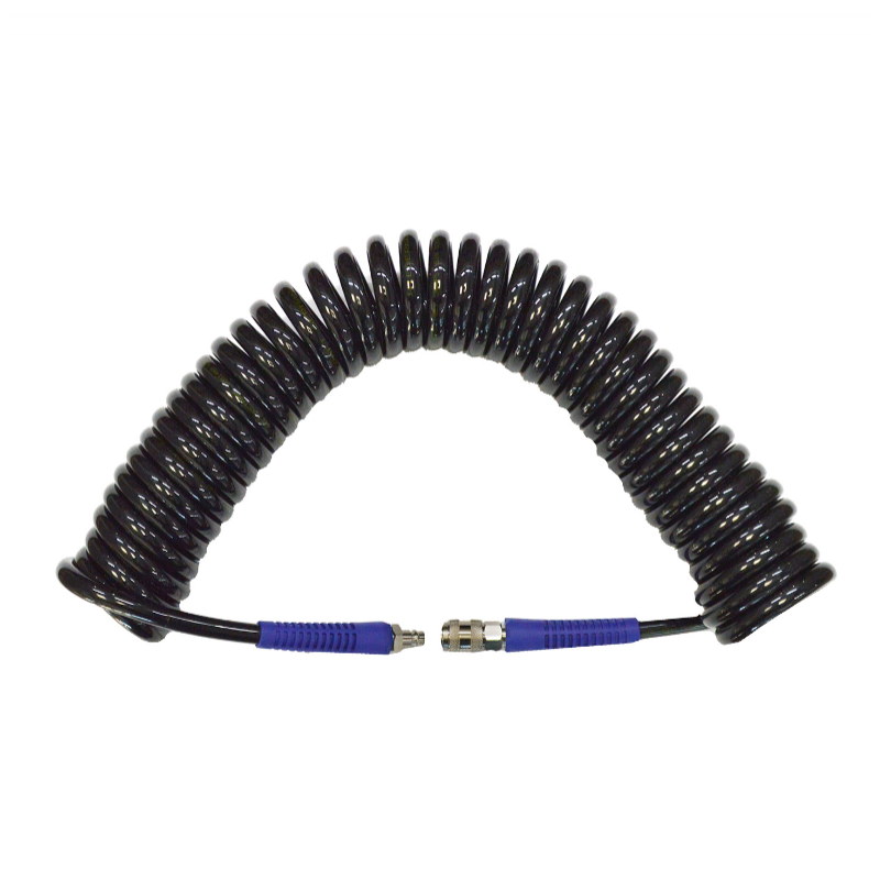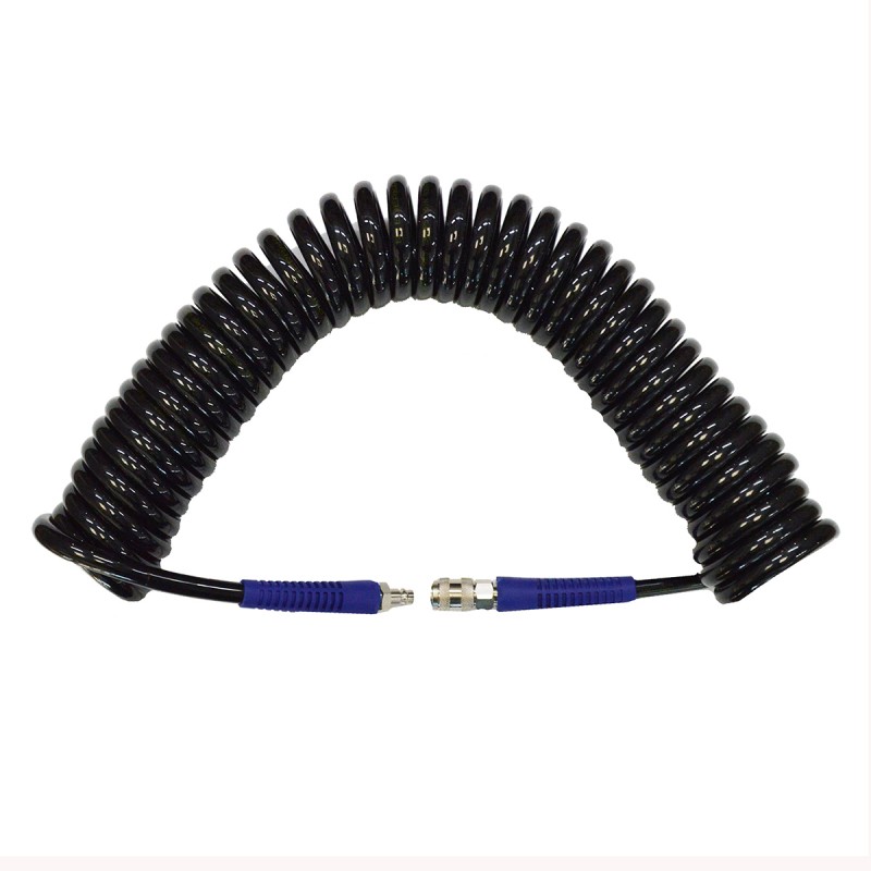 Шланг пневматический спиральный WiederKraft WDK-65810 служит удлинителем между компрессором и рабочим инструментом. Отличается высокой прочностью и гибкостью. Шланг оснащен фитингами типа «рапид».