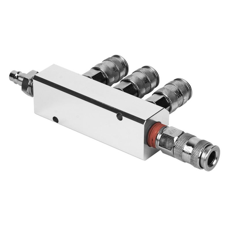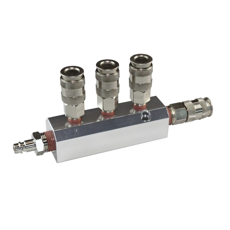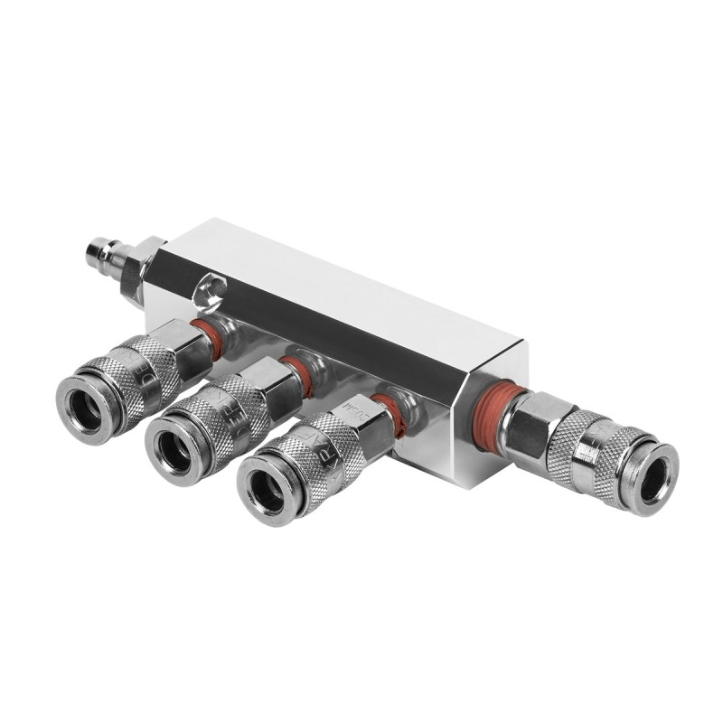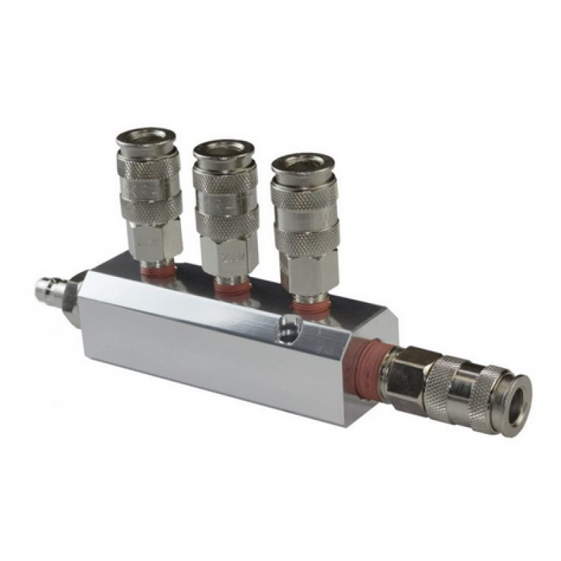 Применяется для одновременного подключения через быстроразъемные соединения до четырех единиц пневматического инструмента и оборудования к пневмосистеме.