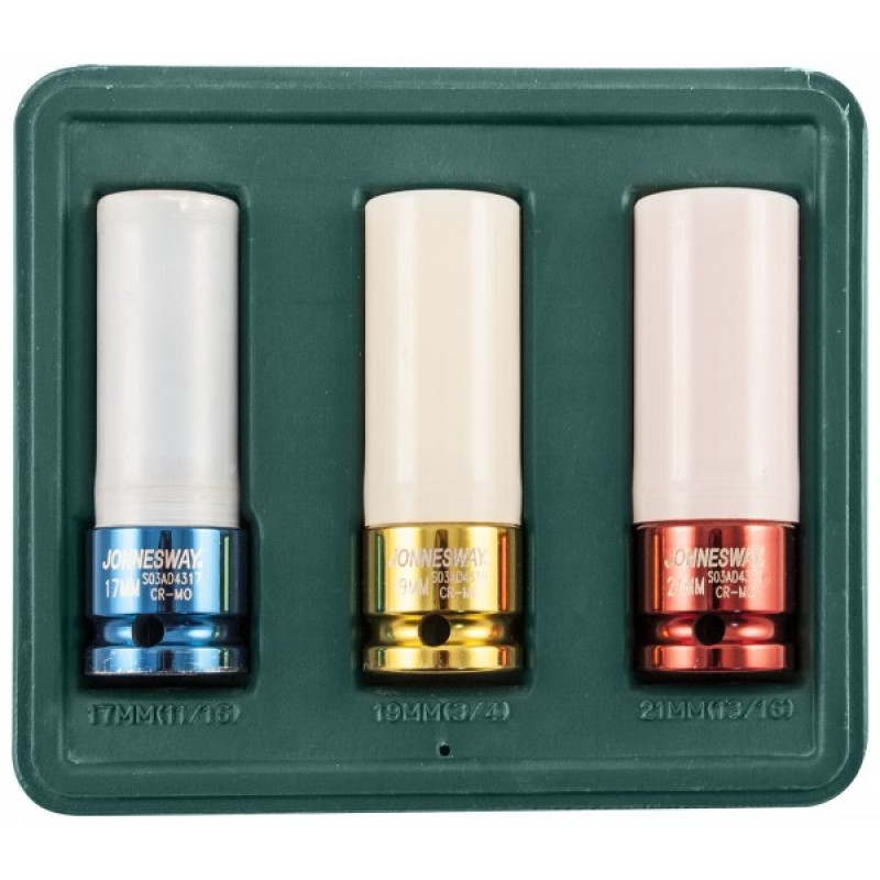 JONNESWAY Комплект торцевых головок ударных глубоких 1/2"DR (пластик, цвет), 17-21 мм, 3 предмета S03AD4303S