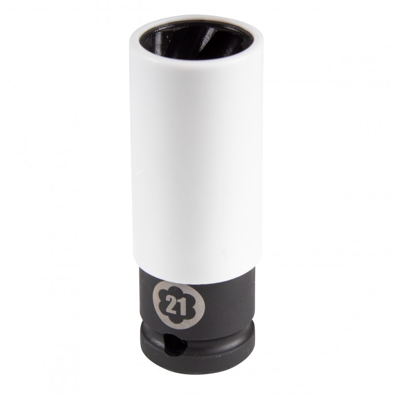 или недопустимо. Съёмная пластиковая втулка поможет защитить колёсный диск от возможных повреждений. Технические характеристики Размер – 21 мм Посадочный квадрат – 1/2 Общая длина – 85 мм Материалы – инструментальная сталь, оксидированное