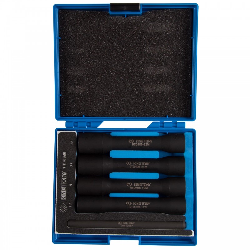 Набор торцевых головок для поврежденных гаек и болтов, 17, 19, 21, 22 мм, 5 предметов KING TONY 9TD165MR