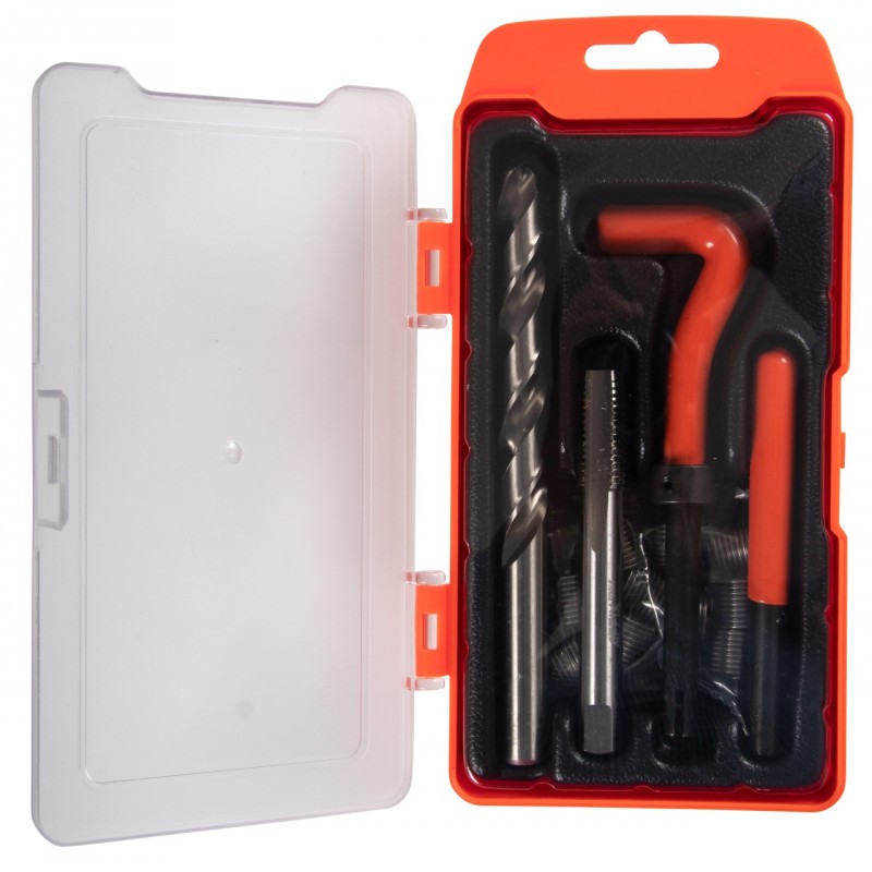 Комплектация – Сверло HSS 12.4?150 мм – Метчик HSS – 10 футорок M12?1.75?1.5D – Инструмент для установки футорки – Инструмент для обламывания хвостика футорки – Шестигранный ключ – Инструкция по эксплуатации Технические характеристики