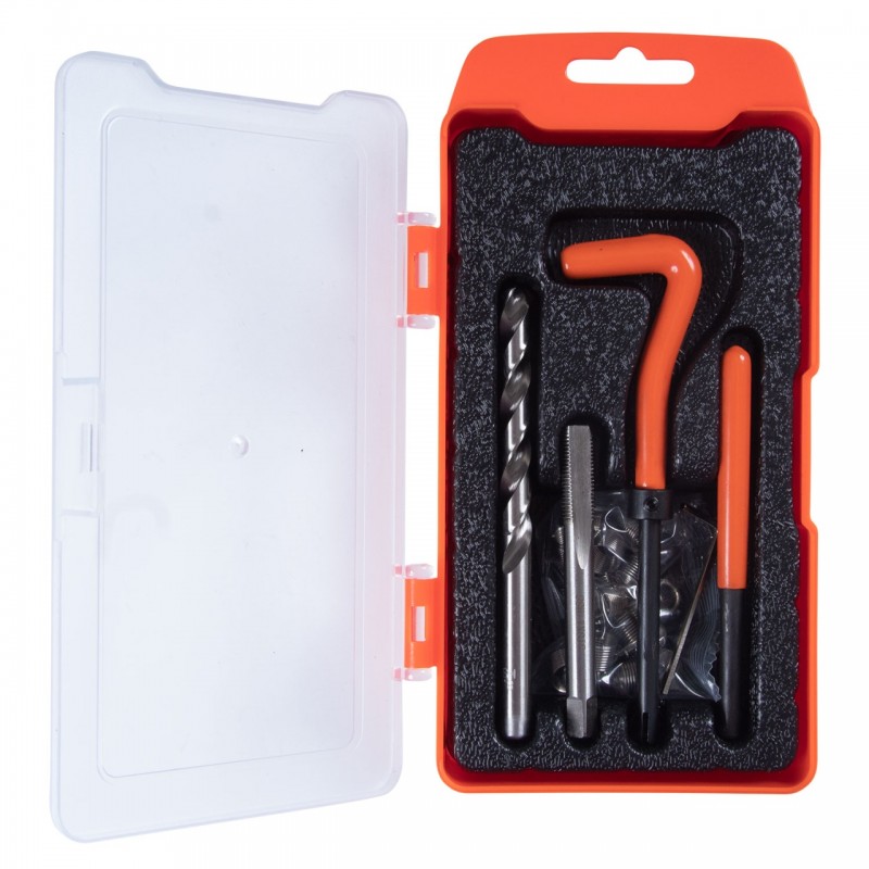 Назначение Ремонт и восстановление повреждённой резьбы Комплектация – Метчик HSS – Сверло HSS 8.3 ? 118 мм – Интрумент для установки футорки – Шестигранный ключ – Инструмент для обламывания хвостика футорки – 20 футорок M8 ? 1.0 ? 1.5D