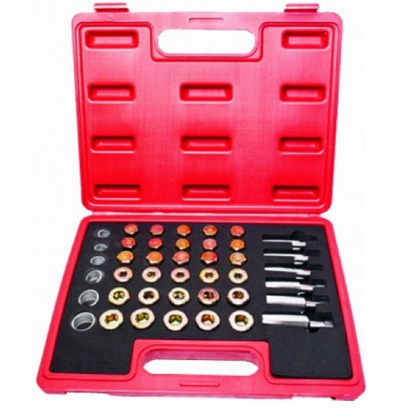 Идеальный комплект подходит для восстановления резьбы масляного поддона, коробка передач и т.д. Набор подходит для грузовых и легких коммерческих авто. Используется для поврежденной резьбы немного больше по размерам, затем установите новую сливную пробку и шайбу. Универсальный набор позволяет перенарезать новую резьбу пробки сливного отверстия вместо поврежденной и установить новую пробку. Включает все типоразмеры пробок, в комплекте:BOD102 / метчик M13 x 1.5P + 5 пробок + 10 медных шайб.