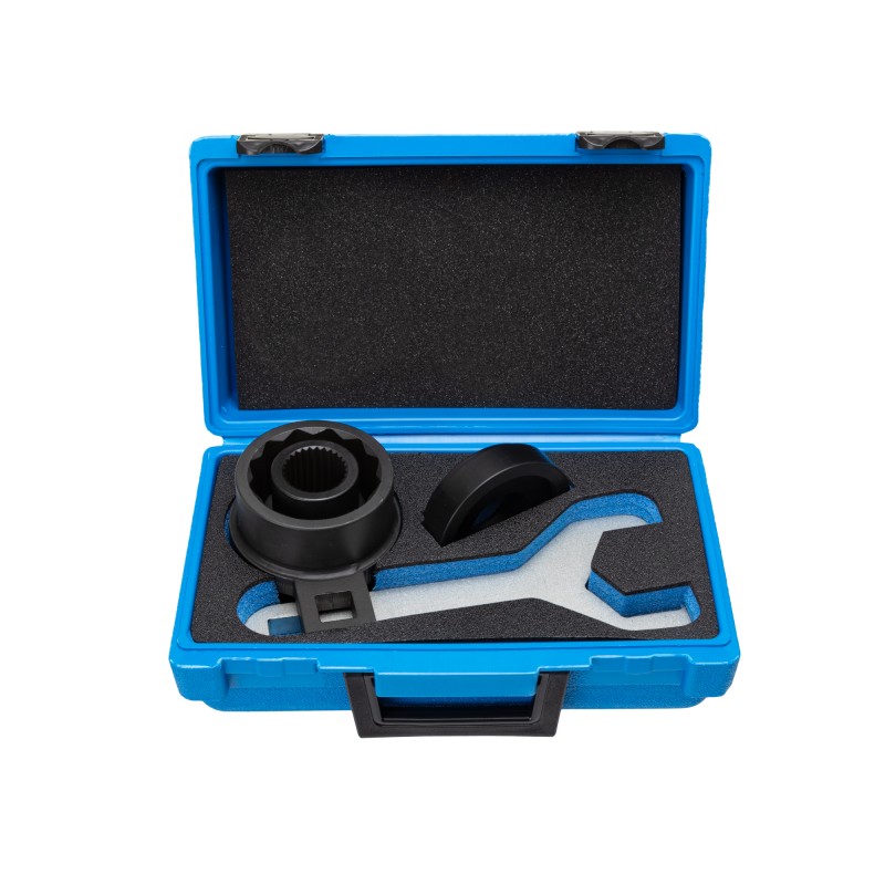Используется для установки и снятия винтовой гайки между задним приводным валом и дифференциалом, также может использоваться для замены резиновых подшипников дифференциала заднего моста.