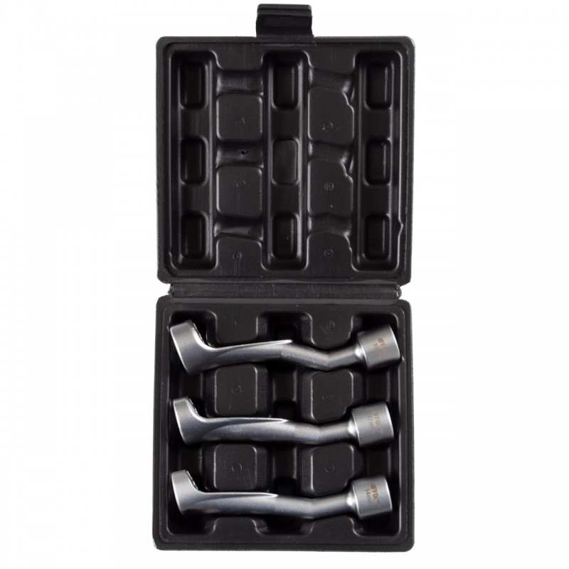 Назначение Монтаж/демонтаж топливных форсунок и датчиков. Применение Для топливных линий BMW, Opel и Mercedes 2,5TD OEM номер 303-249, 303-249-01 Комплектация – Ключи специальные разрезные 14, 17, 19 мм Посадочный квадрат – 1/2 Профиль