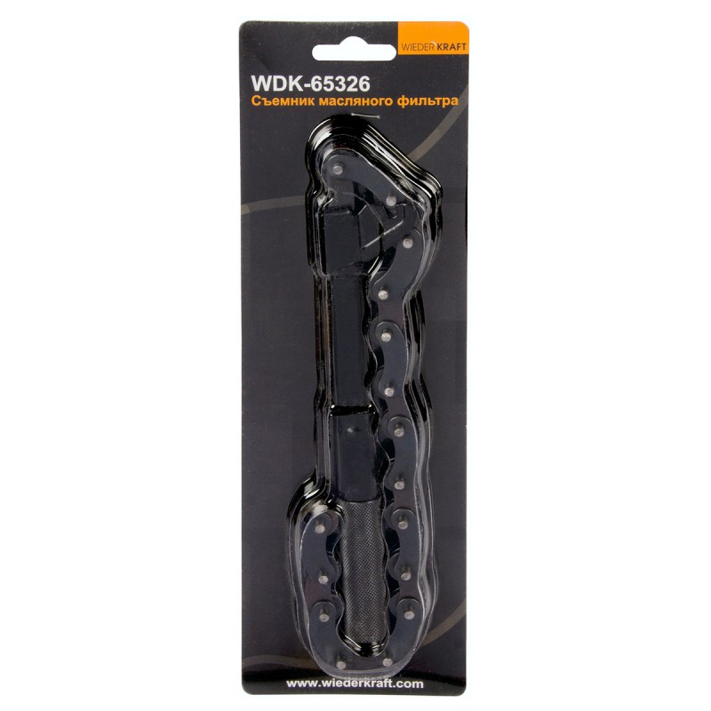 Цепной съемник масляного фильтра WiederKraft WDK-65326 позволяет быстро и эффективно демонтировать масляный фильтр. Конструкция состоит из рукоятки и цепи, которая обхватывает деталь диаметром от 60 до 120 мм. Съемник изготовлен из прочной стали, выдерживающей большие нагрузки.