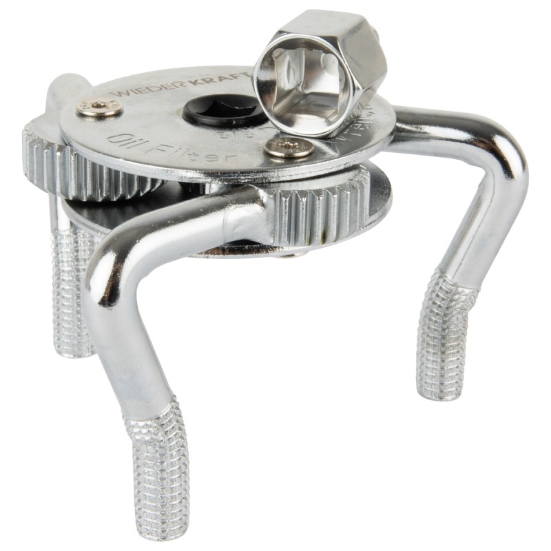 Съёмник масляного фильтра с тремя захватами. Он идеально подходит для работы в труднодоступных местах. Инструмент используется с воротком 3/8”, 1/2” или ключом на 19 мм.