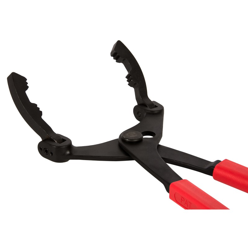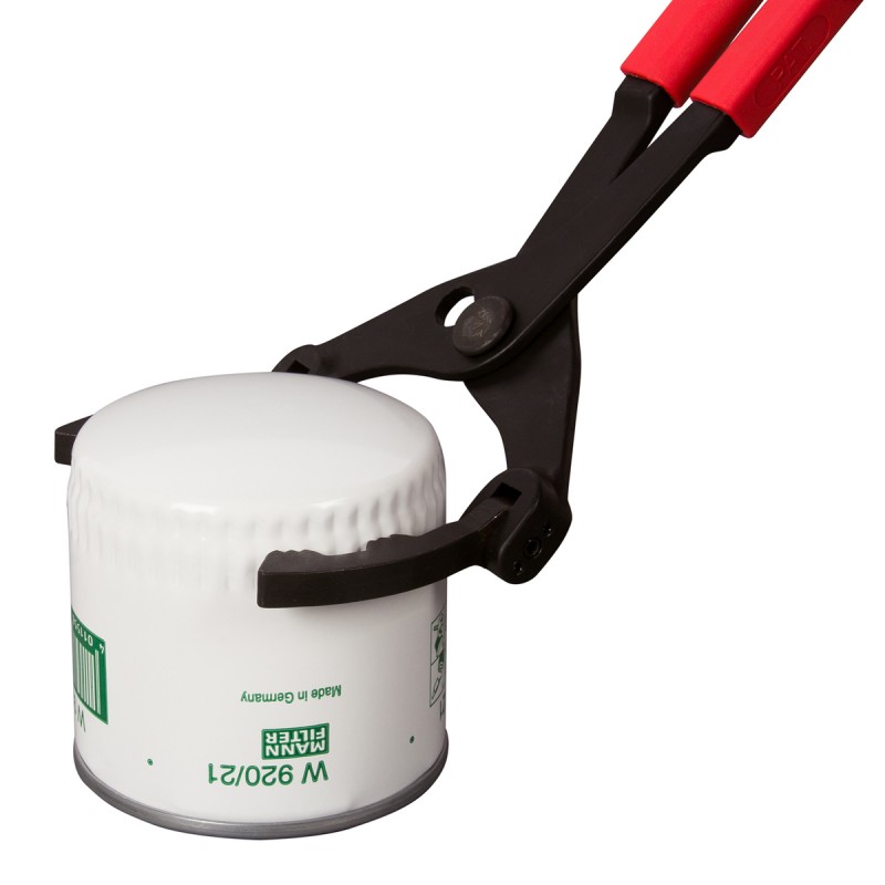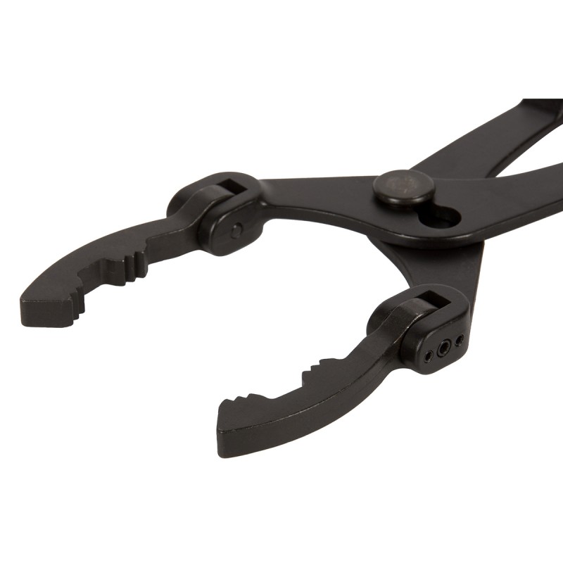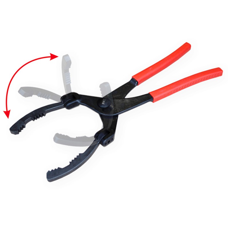 Захваты клещей отклоняются и фиксируются в любую сторону на угол до 90° для облегчения доступа к труднодоступным масляным и топливным фильтрам.