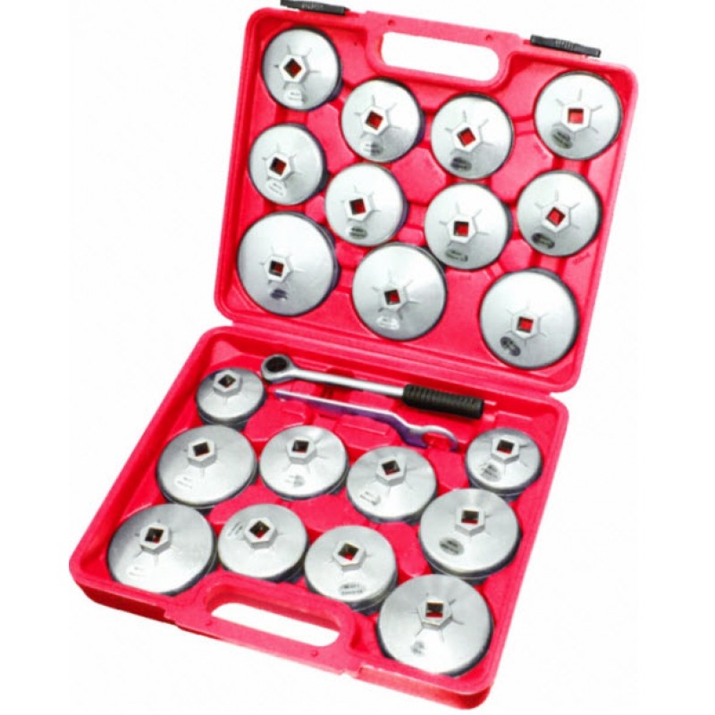 Ключи масляного фильтра выполнены в виде крышек, что позволяет снизить вероятность повреждения маслянного фильтра при его снятии. Комплектация:- 1/2" Ключ для маслянного фильтра 65мм/14-гр., 67мм/14-гр., 73мм/14-гр., 73мм/15-гр., 73мм/30-гр., 74мм/8-гр., 74мм/14-гр., 74мм/15-гр., 75мм/15-гр., 76мм/12-гр., 79мм/15-гр. (2 шт), 84мм/18-гр., 86мм/14-гр., 89мм/15-гр., 91мм/12-гр., 91мм/15-гр. (2 шт), 92мм/15-гр., 95мм/15-гр., 101мм/15-гр.;- 1/2" Трещетка;- Ключ 27мм;- 1/2" Съемник масляного фильтра ленточный.