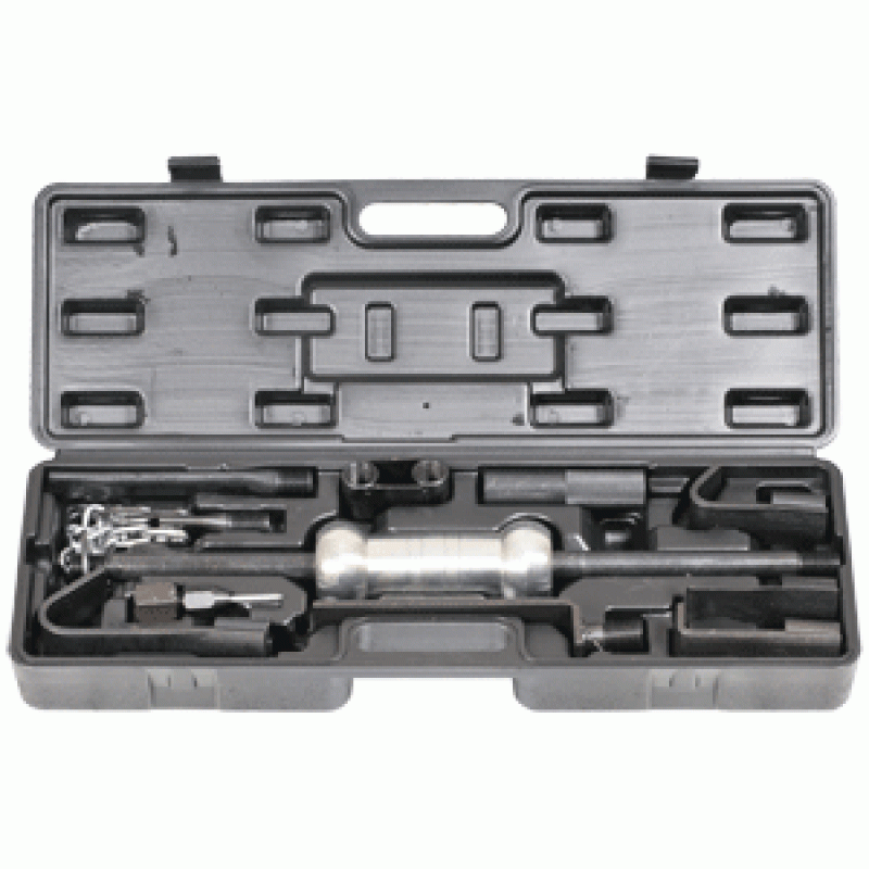 Набор предназначен для ремонта кузовов автомобилей. Применяется для исправления дефектов на стойках, арках и порогах кузовов, а также прочих деталей, доступ к которым затруднён с обратной стороны. Набор состоит из направляющей с ударной частью, которая позволяет прикладывать значительное ударное усилие, а также десяти различных по форме и применению насадок, которые устанавливаются на обратный молоток с одной стороны и крепятся к приваренным к ремонтируемому участку кузова скобам. Материал деталей набора - сталь 45. Насадки закалены до твёрдости 20-26 HRC.