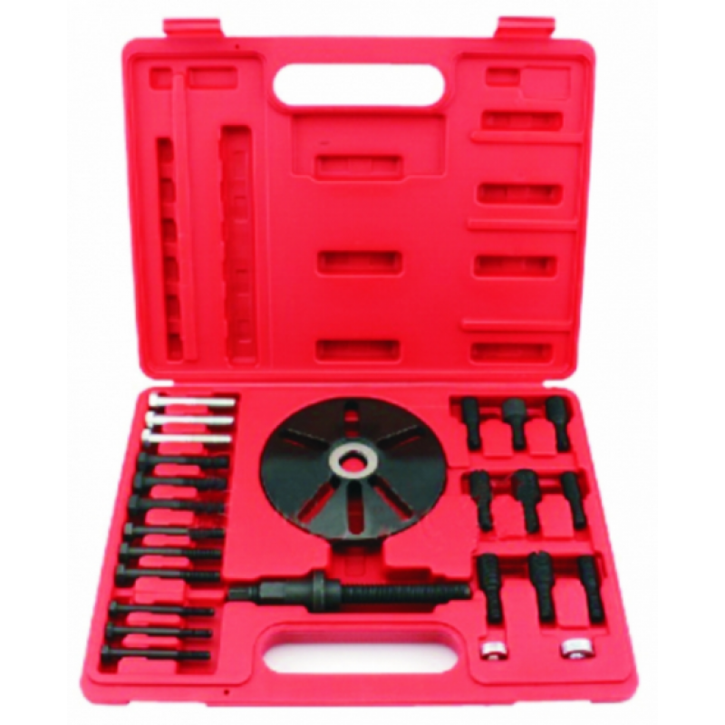 Универсальный съемник представляет собой комплект приспособлений, которые можно использовать для демонтажа различных узлов и деталей автомобилей различных агрегатов, таких как рулевое колесо, зубчатые колеса, шкивы, шестерни. Состоит из:- 1 основная плата- 12 винтов:3/8NC16 X 57 MM - 3/8NC24 X 57 MMM6 X 1.0 X 60 MM - M8 X 1.25 X 60 MM- 1 основной болт - 10 mm- 9 адаптеров:M12 X 1.5 - 3/8NC16M14 X 1.5 - 3/8NC16M16 X 2.0 - 3/8NC161/2 X NC20 - 3/8NC169/16 X NC18 - 3/8NC167/16 X NC20 - 3/8NC163/4 X NC16 - 3/8NC165/8 X NC18 - 3/8NC16 3/8 X NC16 - 3/8NC16
