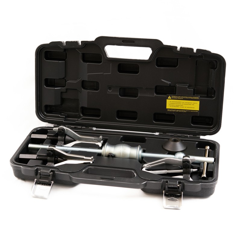ST021 Съемник с внутренними и наружными захватами Внутренний и внешний съемник, 3 захвата с обратным молотком упрощает снятие подшипников с осей и валов. Преимущество работы заключено в наличии небольшого молотка, который увеличивает предельное усилие. Для транспортировки есть кейс.