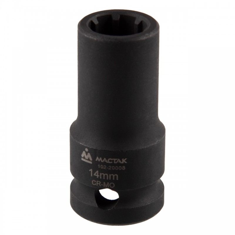 Назначение Монтаж и демонтаж тормозных суппортов автомобилей Audi A5, A6L, Q5, Q7 2017 г.в. и новее. Технические характеристики Рабочий профиль – 7-гранный, специальный Размер – 14 мм Посадочный квадрат – 1/2 Рабочий диаметр (D1) – 20,0