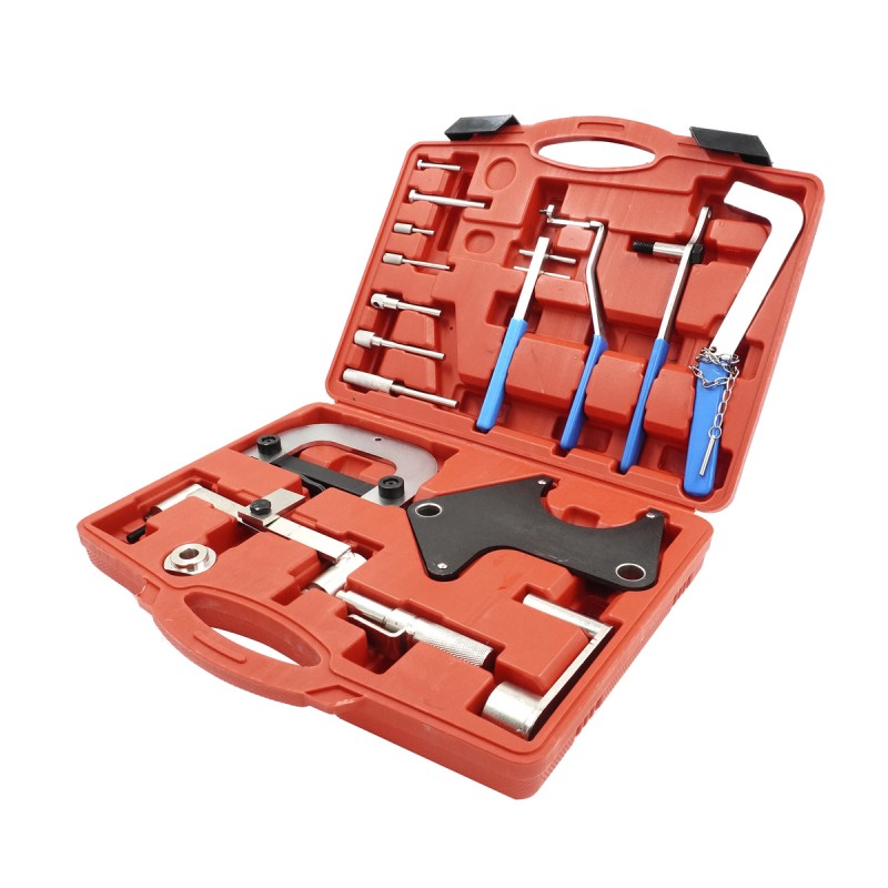 WDK-2140RN - комплект для обслуживания бензиновых и дизельных двигателей автопроизводителя Renault. С его помощью можно производить фиксацию маховика и коленчатого вала, фиксацию вала ТНВД, снятие шкива и т.д. Пластиковый кейс обеспечивает удобство хранения и транспортировки набора, в его конструкции предусмотрены специальные защелки, исключающие выпадение приспособлений.