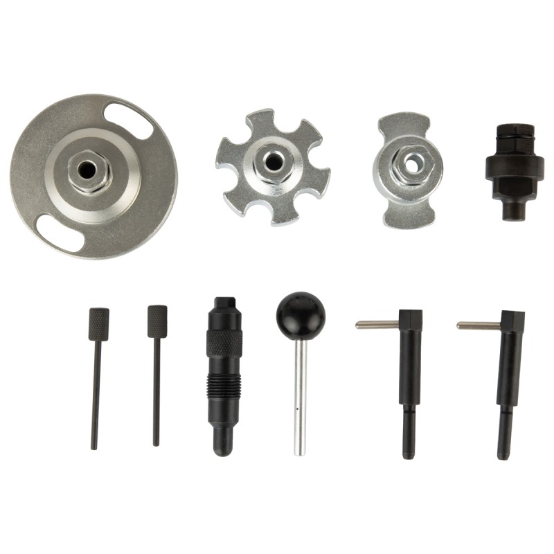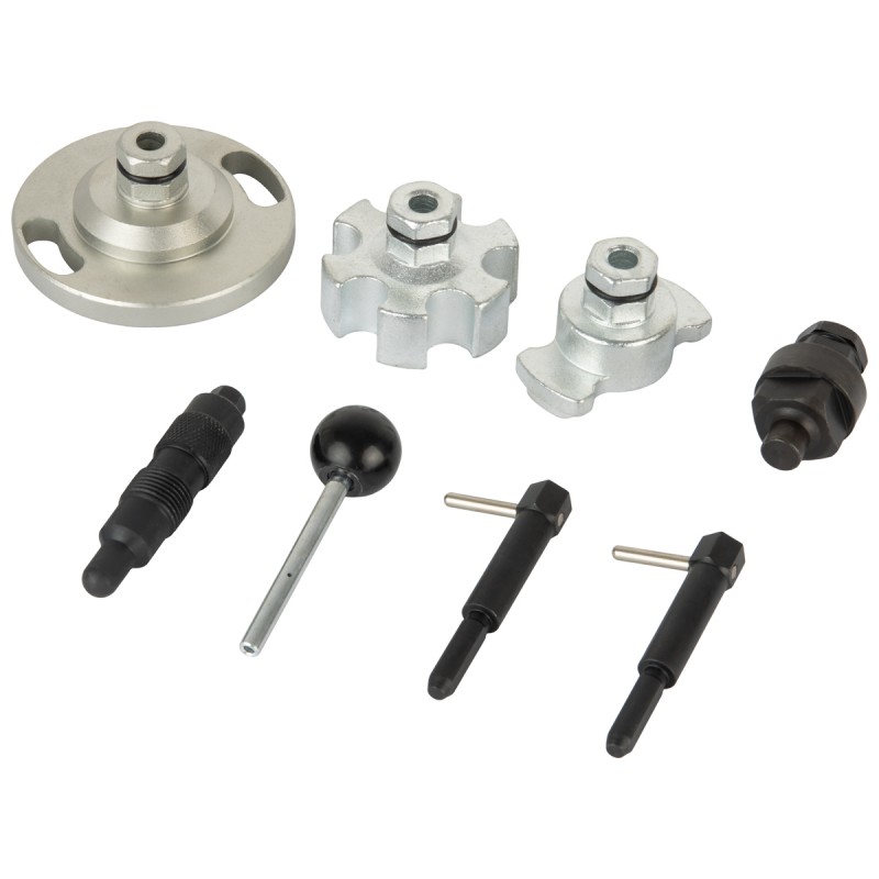 Набор фиксаторов валов VAG 2,7, 3,0 TDi V6 предназначен для установки и регулировки фаз газораспределительного механизма дизельных двигателей VAG группы 2,7 и 3,0 (TDi) V6 с системой впрыска топлива Common Rail.