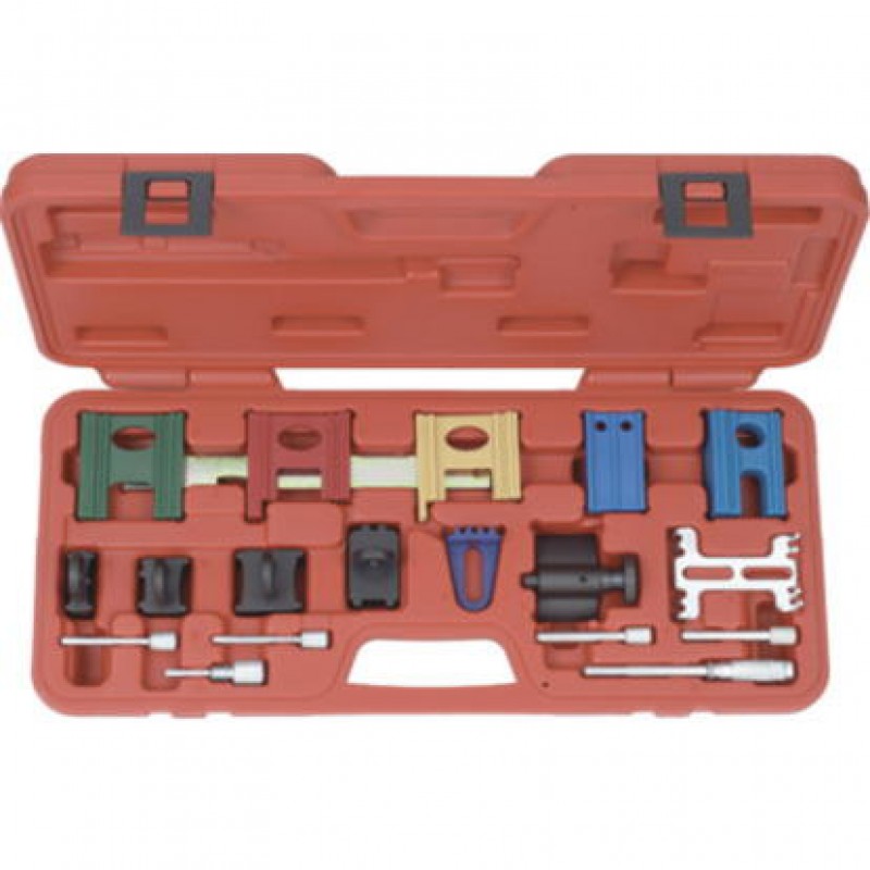 Набор фиксаторов маховика коленчатого вала и распредвалов мультимарочныйВ наборе:1 - Фиксатор шестерни коленчатого вала VW, Ford, VolvoПодходит для двигателей TDI PD с полукруглым профилем зубцов шестерниOEM номер: T10050 / 310-085 / 23-0591 - Фиксатор распредвала RoverПодходит для большинства двигателейOEM номер: 18G 15701 - Фиксатор распредвала Opel, SaabПодходит для двигателей V6 2.5, 2.6OEM номер: KM 800/11 - Фиксатор распредвала Opel, SaabПодходит для двигателей V6 2.5, 2.6OEM номер: KM 800/21 - Фиксатор распредвалов OpelПодходит для двигателей 16V 1.4L, 1.6L, 1.8LOEM номер: KM 8521 - Фиксатор распредвалов OpelПодходит для дизельных 1.7D и бензиновых 16-клапанных двигателей 1.8L, 2.0L, 2.2L TurboOEM номер: KM 8531 - Установочная планка для распределительных валов FordOEM номер: 21-162B / 303-3761 - Фиксатор маховика OpelПодходит для дизельных 1.6L, 1.7L и бензиновых OHC двигателей 1.2L, 1.4L, 1.6L, 1.8L, 2.0LOEM номер: KM 517B6 - Фиксаторов различного диаметра1 - Фиксатор маховика Citroën, Fiat, PeugeotПодходит для бензиновых и дизельных двигателейOEM номер: 1 860 161 000 / 0153A / 6012T / 9765-54
