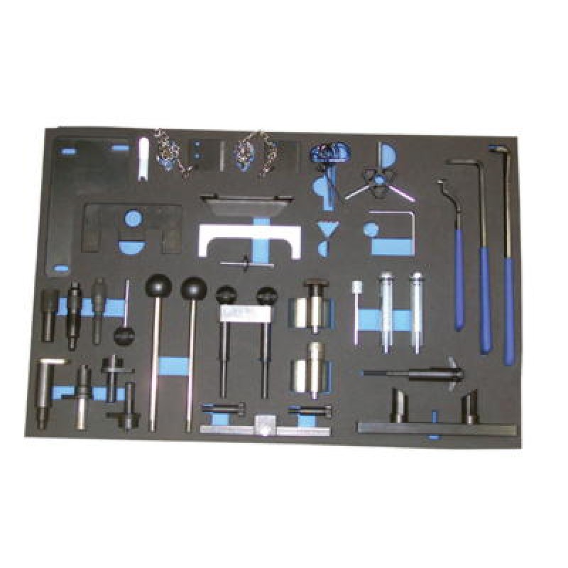 Набор для обслуживания двигателей VW-AudiЛожемент EVAВ наборе:1 - Фиксатор коленчатого вала в ВМТПодходит для двигателей V6 и V8OEM номер: 32421 - Фиксатор коленчатого вала в ВМТПодходит для 5-клапанных двигателей V6 3.0LOEM номер: T400261 - Фиксатор шестерни ТНВДПодходит для двигателей: 1V, 1Z, AAB, ACV, AHU, AWP, AWV, CS, CY, DE, MD, ME, MFТакже подходит для двигателей Volvo D24 до 1999 годаOEM номер: 20641 - Фиксатор шестерни ТНВДПодходит для двигателей TDI 1999 - 2006 годовOEM номер: 3359 / T201021 - Установочная планка для распределительного валаПодходит для дизельных двигателей TDI 1996 - 2003 годовOEM номер: 34181 - Установочная планка для распределительного валаПодходит для дизельных двигателей SDI / TDI 1997 - 2005 годовПозволяет выставить вал в нужном положении без снятия клапанной крышкиOEM номер: T10098 / 34282 - Фиксатора распределительного валаПодходят для 6-клапанных двигателей 1.2L c цепным приводом (AWY, BMD)OEM номер: T101231 - Фиксатор распределительного валаПодходит для 12-клапанных двигателей 1.2L c цепным приводом (AZQ, BME)OEM номер: T101201 - Фиксатор коленчатого валаПодходит для 6-, 12-клапанных двигателей 1.2L c цепным приводом (AWY, BMD, AZQ, BME)OEM номер: T101211 - Установочная планка для распределительных валовПодходит для двигателей VR6OEM номер: 32682 - Фиксатора натяжителяOEM номер: T10060, T10060A1 - Фиксатор ролика натяжителя ремняПодходит для двигателей 1,9L TDI PD, 2,0L TDI PDOEM номер: T101156 - Фиксаторов ролика натяжителя ремня: 0.8, 1.2, 1.4, 1.5, 1.8, 1.9 ммOEM номер: T400111 - Приспособление для ослабления ролика натяжителя ремня 1,8TOEM номер: T100921 - Фиксатор шестерни коленчатого валаПодходит для двигателей 1,2L, 1,4L, 1,9L TDI PDOEM номер: T100501 - Фиксатор шестерни коленчатого валаПодходит для двигателей TDI PD с овальным профилем зубцов шестерни коленчатого валаOEM номер: T101001 - Фиксатор натяжителя цепи распределительных валовПодходит для 4-, 6-, 8-цилиндровых 5-клапанных двигателейOEM номер: 33661 - Ключ для натяжного роликаOEM номер: 33871 - Ключ для натяжного роликаOEM номер: 25871 - Ключ для натяжного роликаOEM номер: T100201 - Установочная планка для распределительных валовПодходит для двигателей 2,0L FSI и 2,0L TFSIOEM номер: T102521 - Фиксаторы распределительных валовПодходит для двигателей 1,2L, 1,4L, 1,9L TDI PD2 - Направляющие болтыOEM номер: 34112 - Направляющие болтыOEM номер: 33691 - Фиксатор ролика натяжителя ремняOEM номер: T10008 / 310-084 / 23-00582 - Фиксирующие планки для распределительных валовПодходят для двигателей 2.5 TDI V6 и 3.3 TDI V8OEM номер: 34581 - Фиксирующая планка для распределительных валовПодходит для дизельных двигателейТакже подходит для 6-цилиндровых двигателей Volvo D24 1981-1986 годовOEM номер: 2065А1 - Фиксатор шестерен распределительных валовПодходит для 4-цилиндровых 4-клапанных двигателей 1,4L, 1,6LOEM номер: T10016