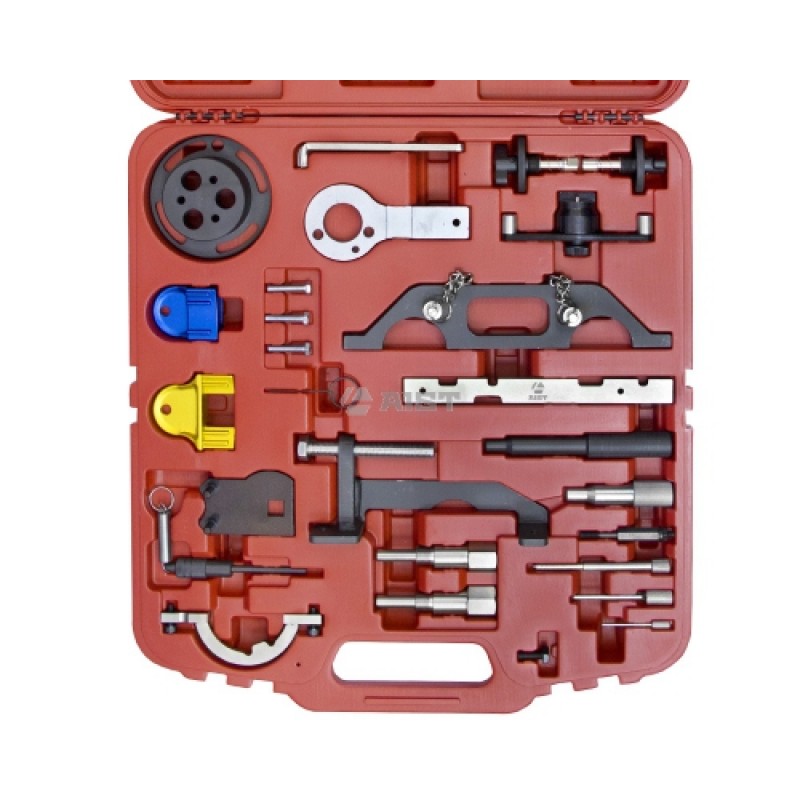 Набор инструмента для ремонта системы ГРМ, OPEL AIST 67230501Применение:- для фиксации распредвала, коленвала и маховика при ремонте системы газораспределения;- содержит фиксаторы и съемники шкивов ТНВД и водяного насоса, натяжитель ремня ГРМ;- подходит для бензиновых двигателей: 1.0л/12V, 1.2л/16V (с 1997 года), 1.4, 1.6, 1.8, 2.0, 2.2л/16V (с 1995 года) автомобилей Opel: Agila, Astra, Corsa, Frontera, Meriva, Omega, Signum, Sintra, Speedster, Tigra, Vectra, Zafira; дизельных двигателей: 1.3л CDTi 16V, 1.9л CDTi, 2.0л DTi, 2.2л DTi автомобилей Opel: Agila, Astra, Combo-C, Corsa, Frontera, Omega, Signum, Sintra, Tigra, Vectra, Zafira;- также подходит для SAAB, RENAULT...