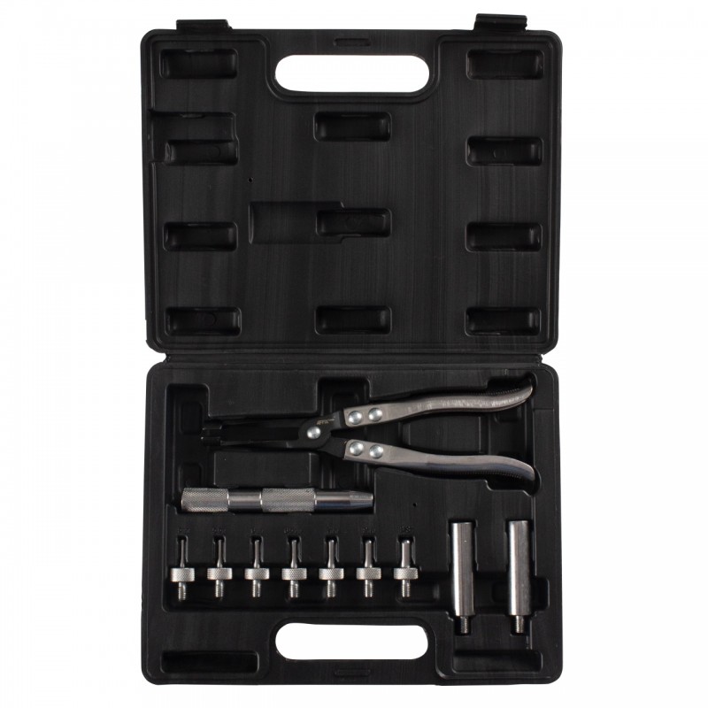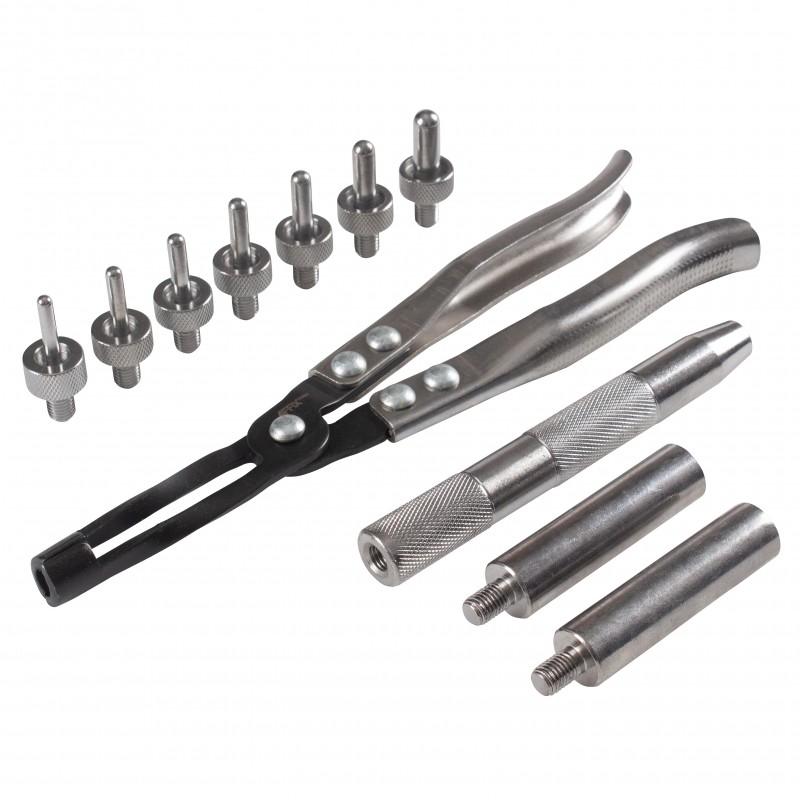 Назначение Используется для снятия и установки маслосъемных колпачков при ремонте двигателя. Комплектация – Щипцы для маслосъемных колпачков – Переходник для адаптеров – Два адаптера для установки маслосъемных колпачков 10.8-14.8 мм –