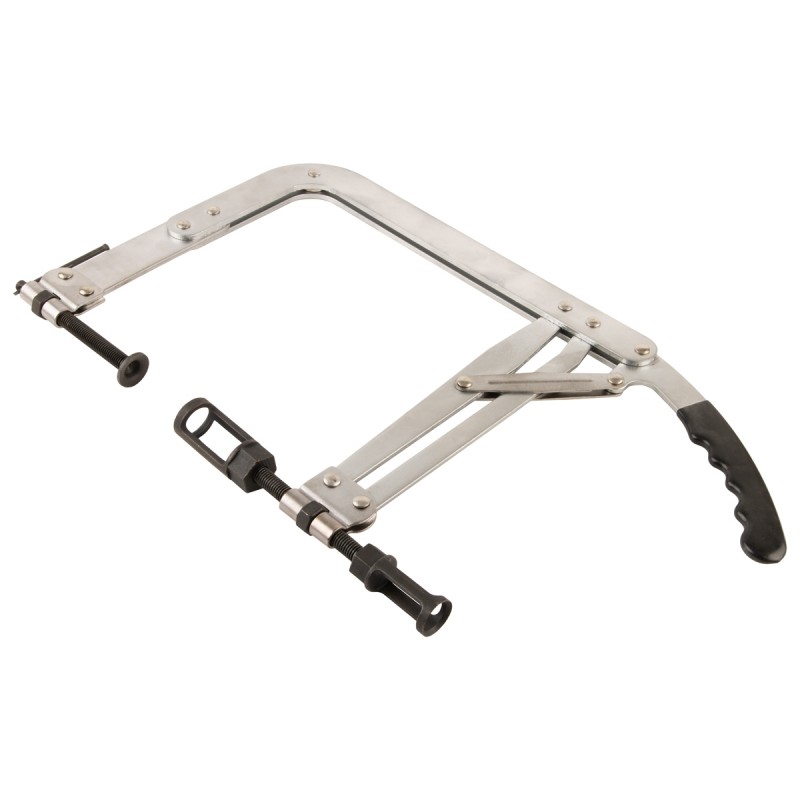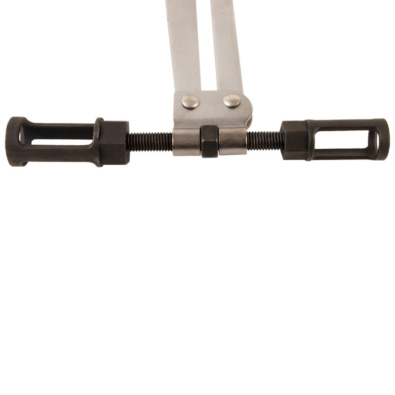 Универсальный рассухариватель клапанов предназначен для сжатия пружин впускных и выпускных клапанов. Выполнен в форме струбцины. Используется при снятой головке блока цилиндров. Регулировка рабочего хода с помощью резьбового вала в зависимости от длины клапана. Фиксация струбцины в необходимом положении позволяет освободить руки для удобства демонтажа стопорных сухарей клапана.