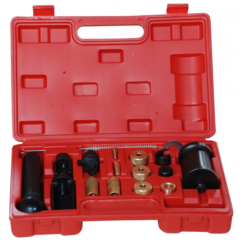 Обслуживание и ремонт двигателя редко осуществляется без снятия форсунок. Из-за некачественного топлива и длительного срока эксплуатации форсунки автомобиля могут засориться и выйти из строя. Это приведет к некорректной работе двигателя, возрастанию расхода топлива и потере мощности. Поэтому не стоит затягивать с процедурой замены и чистки данных деталей, чтобы предотвратить более серьезные проблемы с мотором. В нашем интернет-магазине, вы можете приобрести специальный съемник форсунок с адаптерами для двигателей FSI. Удобный принцип действия инструмента позволит аккуратно извлечь самые трудно поддающиеся форсунки, не повредив при этом детали мотора. Приспособление адаптировано для моторов на автомобилях марки Audi и Volkswagen объемом от 1,4 до 4,2 литра. ВПрофессиональный набор съемников для FSI инжекторов VW и Audi моделей. Двигателей: 1.4, 1.6, 1.8, 2.0, 2.7 V6, 3.0 V6, 3.2 V6, 3.6 V6, & 4.2 V8 FSIИзготовлен из Хром-Молибдена и стали S45C для прочности и долговечности.