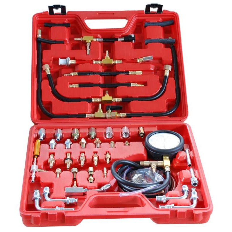 Наиболее полный многофункциональный комплект для измерения давления топлива с большим набором адаптеров и фитингов для большинства марок и моделей автомобилей.