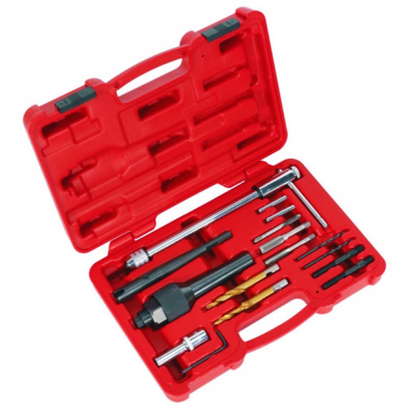 Специальный набор приспособлений разработан для ремонта дизельных автомобилей AUDI / VW с двигателями объемом 2.5 / 2.7 / 3.0 L V6 TDI, в частности для извлечения свечей накаливания с резьбой M8 x 1.0 или M10 x 1.0. Данный набор будет весьма кстати, когда в ГБЦ осталась сломанная свеча накаливания. Набор инструментов для свечей накаливания дизеля VAG V6 TDI• Назначение набора инструментов VAG: демонтаж сломанной свечи накаливания из ГБЦ• Параметры свечей накаливания: резьбовая часть M8x1.0 или M10x1.0• Применение: VAG 2.5 / 2.7 / 3.0 L V6 TDIКомплектация набора инструментов для VW / AUDI• Винтовой съемник свечей накаливания VAG – 1 шт.
