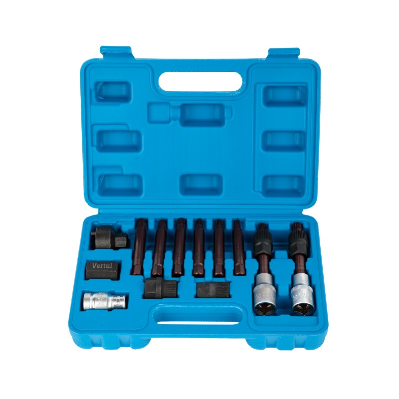 Набор для генераторов и обгонных муфт состоит из 13 предметов предназначенных для монтажа / демонтажа всех типов шкивов свободного хода Bosch и Denso.