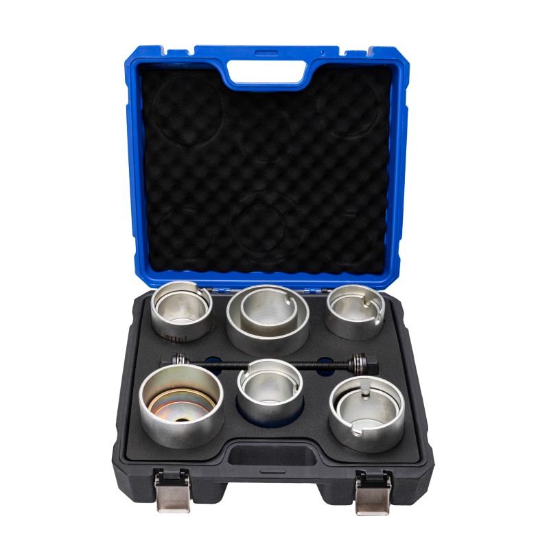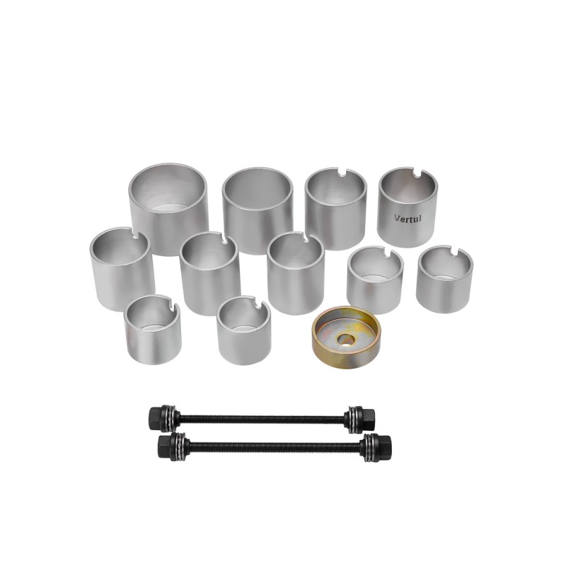 Набор может использоваться как самостоятельный инструмент для монтажа / демонтажа сайлентблоков, также станет прекрасным дополнением для гидравлического съемника сайлентблоков VR50370