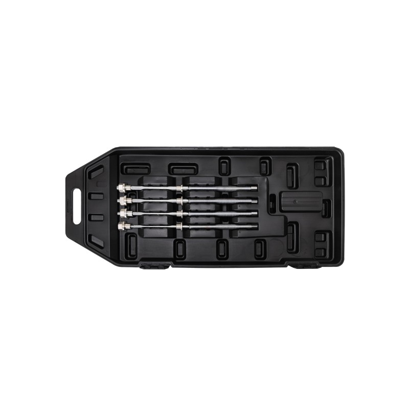 Набор предназначен для монтажа и демонтажа сайлентблоков, подшипников, втулок. В комплекте имеется гидравлический цилиндр позволяющий упростить и ускорить процедуру замены расходных элементов.