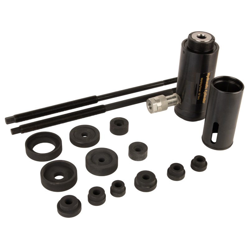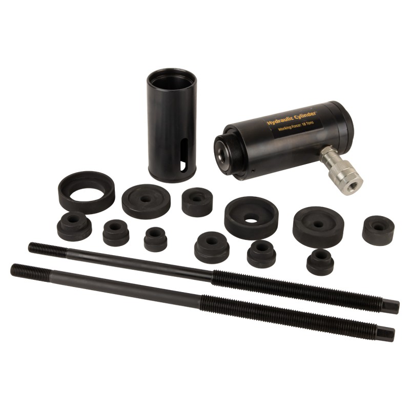 Набор инструмента для снятия и установки саи?лентблоков и втулок грузовых автомобилей при помощи гидравлического привода.