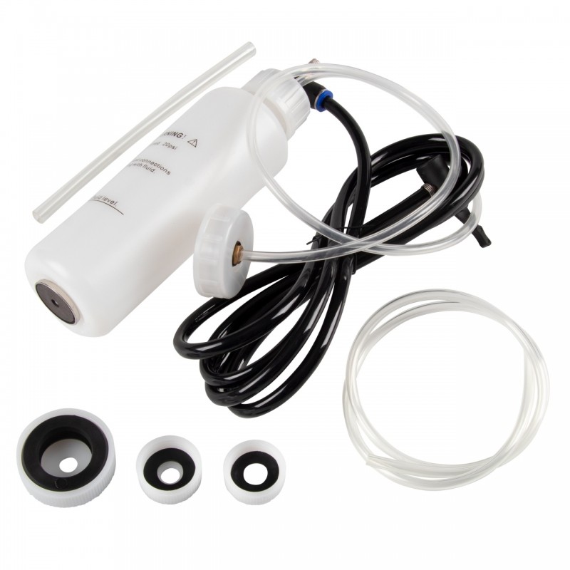 – Запасная прокладка 3 мм для крышки-переходника ? 45 – Запасной заборный шланг 187 мм ? 6?9 мм – Запасной подающий шланг 800 мм ? 3?6 мм Назначение Опрессовка (прокачка) гидравлических контуров приводов тормозных механизмов, рабочих