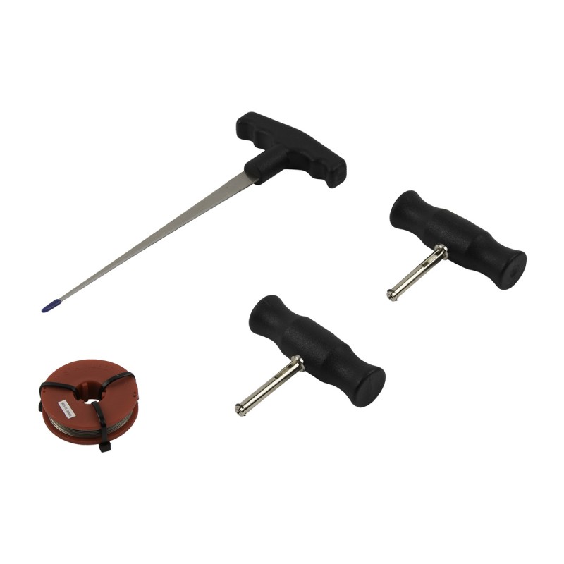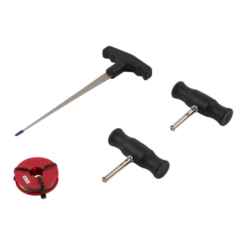 Набор для замена стекол автомобиля WiederKraft WDK-65508 представляет собой комплект изделий, выполненных из прочных материалов. В наборе 4 предмета для демонтажа вклеенных стекол автомобиля. Рукоятки для струны имеют Т-образную форму. Струна служит для срезания клеевого слоя.
