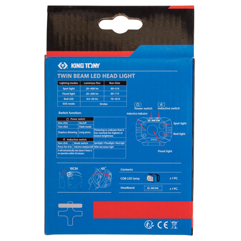 Фонарь светодиодный, налобный, 1 Led COB, 3,7 В KING TONY 9TA53