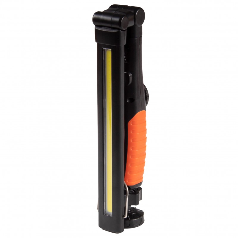 • COB LED основной свет + SMD LED точечный свет • Плавная регулировка яркости (основной свет) • Складная конструкция на двойном шарнире • Поворотный корпус 360° • Магнитное поворотное основание 270° • Скоба для подвеса Комплектация – Фонарь