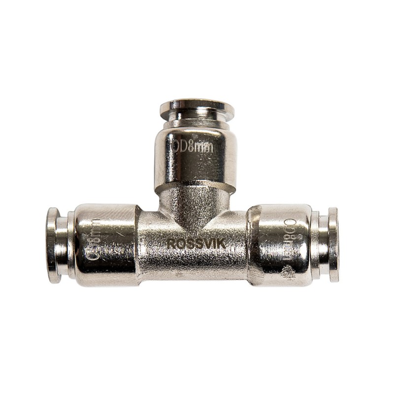 Пневмосоединение Т-образное, цанговый разъем для трубки 8х6 мм (внешн./внутр.) (3 соединения)