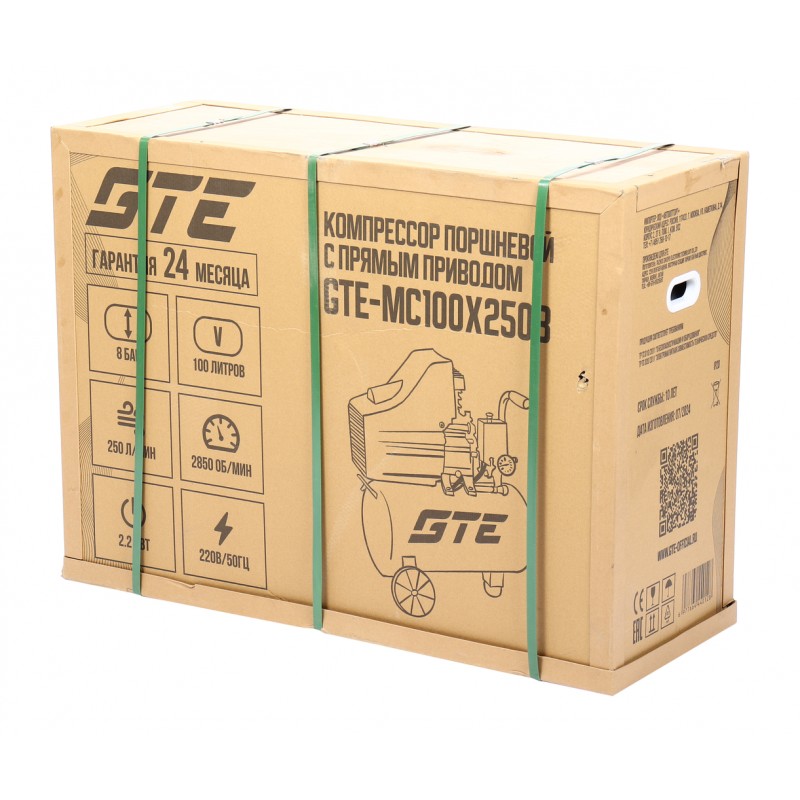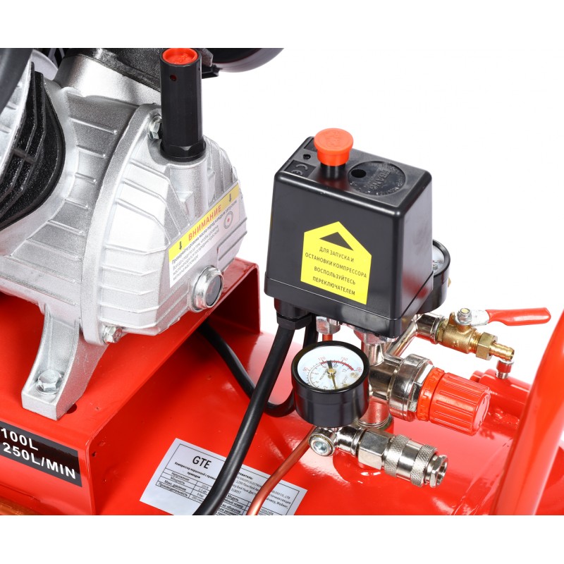 Компрессор пневматический 220В 2.2кВт 8атм. 250л/мин. ресивер-100л поршн. с прям. прив. V-образ. GTE GTE-MC100X250B