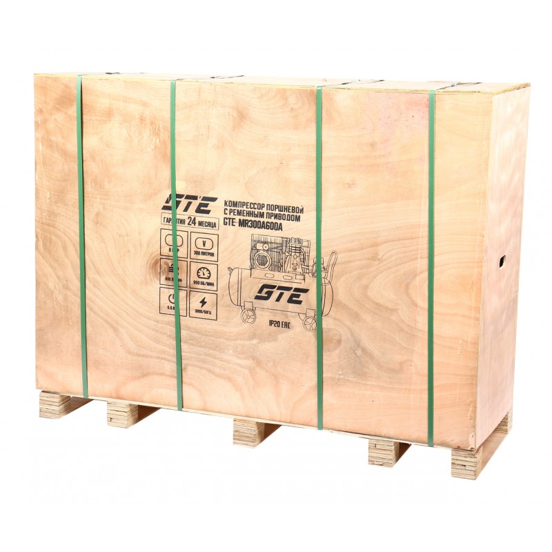 Компрессор пневматический 380В 5.5кВт 8атм. 600л/мин. ресивер-300л поршн. ремен. одноступенчатый GTE GTE-MR300A600A