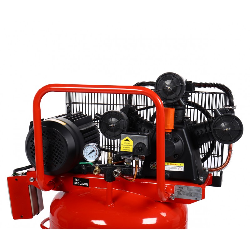 Компрессор пневматический 380В 3.0кВт 8атм. 400л/мин. ресивер-150л поршн. ремен. вертикальный GTE GTE-MR4B150400A