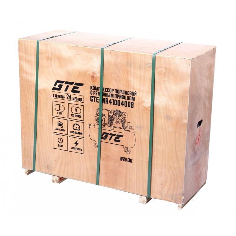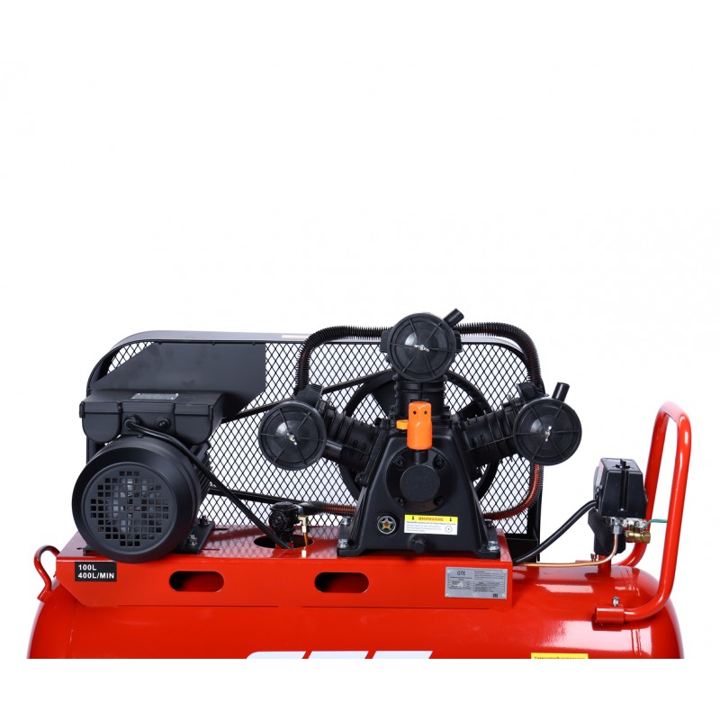 Компрессор пневматический 220В 3.0кВт 8атм. 400л/мин. ресивер-100л поршневой ременной GTE GTE-MR4100400B
