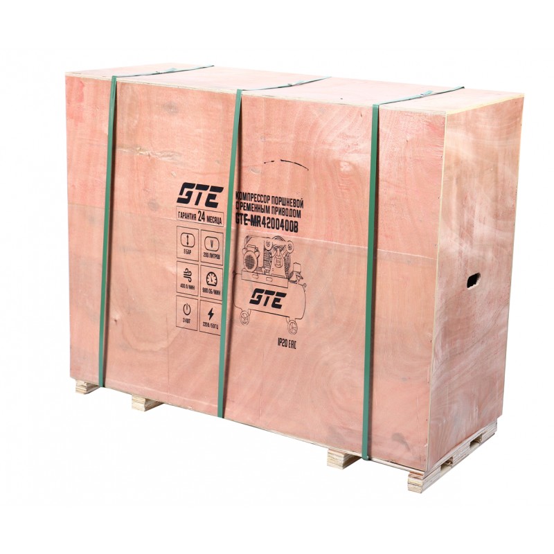 Компрессор пневматический 220В 3.0кВт 8атм. 400л/мин. ресивер-200л поршневой ременной GTE GTE-MR4200400B