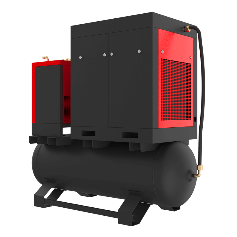 Особенностью данного модельного ряда является оптимальная (с точки зрения экономии рабочих площадей) компоновка: винтовой компрессор и осушитель размещаются непосредственно на ресивере. Чаще всего модели моноблочного типа «3 в 1» используются на предприятиях, где нет возможности установить компрессор, осушитель и ресивер по-отдельности.