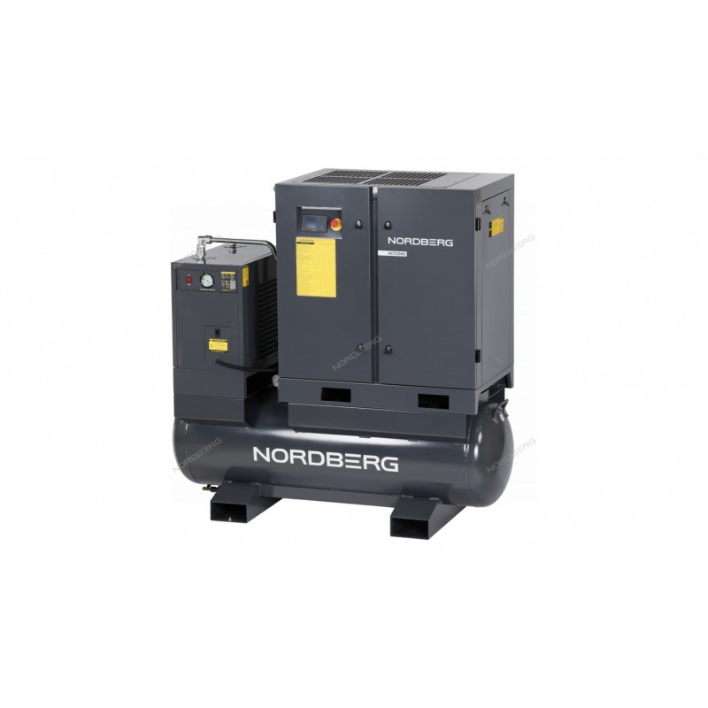 Компрессор винтовой, 15 кВт, 10 бар, 2150 л/мин, ресивер 410 л, с частотным преобраз., осушитель NORDBERG NCF20RD
