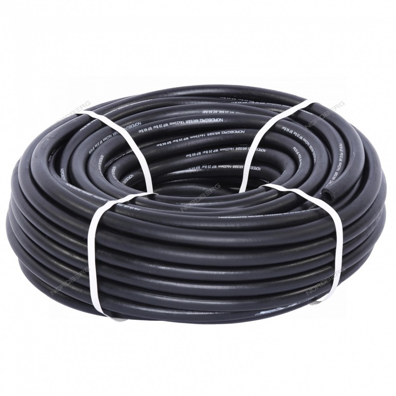 Прямой воздушный шланг NORDBERG H1423R — резиновый, с нитяным усилением 14×23 мм.ФУНКЦИОНАЛПредназначен для подачи сжатого воздуха под давлением от компрессора к пневмоинструменту. Изготовлен из гладкой резины SBR/NR.ПРЕИМУЩЕСТВАSBR (стирол-бутадиеновый каучук) — устойчив к нагреву, трению и деформации;NR (натуральный каучук) — обладает высокой эластичностью, прочностью, гибкостью и стойкостью к истиранию;Выдерживает давление до 60 бар и температуру от –30 °C до +70 °C.NORDBERG H1423R — Надёжное решение для интенсивной работы в автосервисах и производственных условиях.