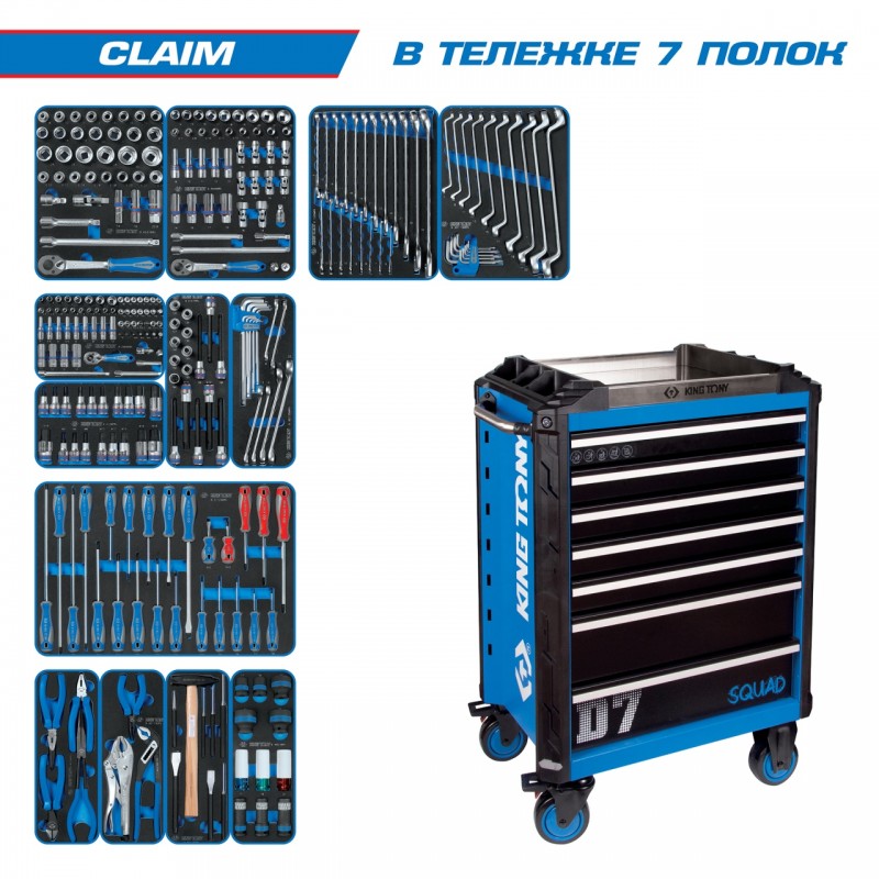 Набор инструментов CLAIM в синей тележке, 286 предметов KING TONY 9SQ31-286MRV